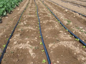 But honestly, I did have what looked like graph paper in front of me. Farmer Dave had built some sort of tractor attachment that lays a grid on the soil. In front of me were three long vertical lines cut every foot by a horizontal line. My landmarks were the places the verticals and horizontals met. I had to plant there as well as halfway between. Sounds simple enough, no? That’s what I thought.