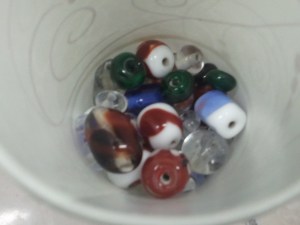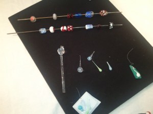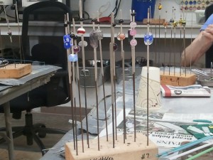 Once we take the beads out of the kiln, we keep them on the mandrels for a while to be sure the entire bead is cool (and not just the outside).
