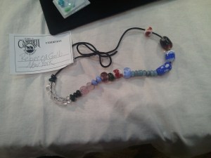 Remember when I asked last week why someone would take a blacksmithing class in July? Well, I could have said the same about beadmaking in August. Our studio doesn’t get as warm as a blacksmith shop, and we do have air-conditioning, but in the morning we open to doors to keep the place well-ventilated and then sit in front of a flame that, at its base, is two thousand degrees Fahrenheit. So it can be a little warm.