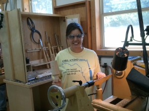 On my first evening in the woodturning studio two weeks ago, I put on the safety glasses the Folk School had on hand. I could feel the plastic digging into my cheeks. Wearing these things for six hours a day for the next five days was not going to be comfortable – and the indented-skin-around-the-eyes look just wasn’t doing it for me. So I decided to head to Lowe’s the next morning to get myself my own pair of safety glasses.