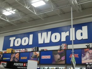 “If we have enough time,” Tom said earlier that morning, “we can head over to Tool World.” I thought it funny of him to call the tool section Tool World. Not til we got there did I realize Lowe’s actually has those very words written on the wall. Tom showed us the tools that were worth the investment and those that were truly unnecessary.