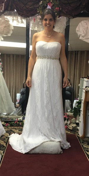 After trying on six dresses, we put one on hold and left the store. “I don’t want to buy another dress tonight. I just want to see some other options,” I told him.
