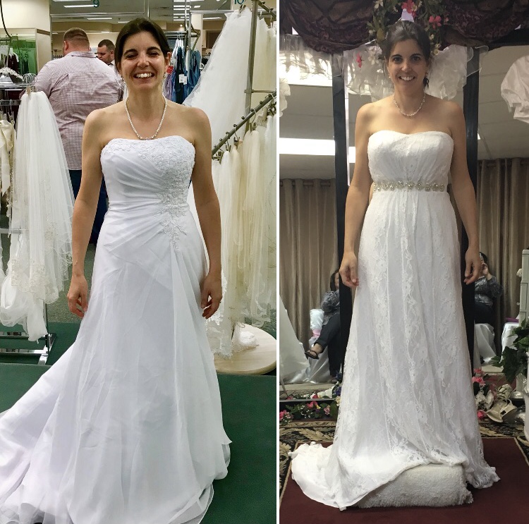My maid-of-honor took the pictures I’d sent of both dresses and put them into one side-by-side picture. And after shamefully admitting my dilemma to friends and showing them the picture, I still wasn’t sure.