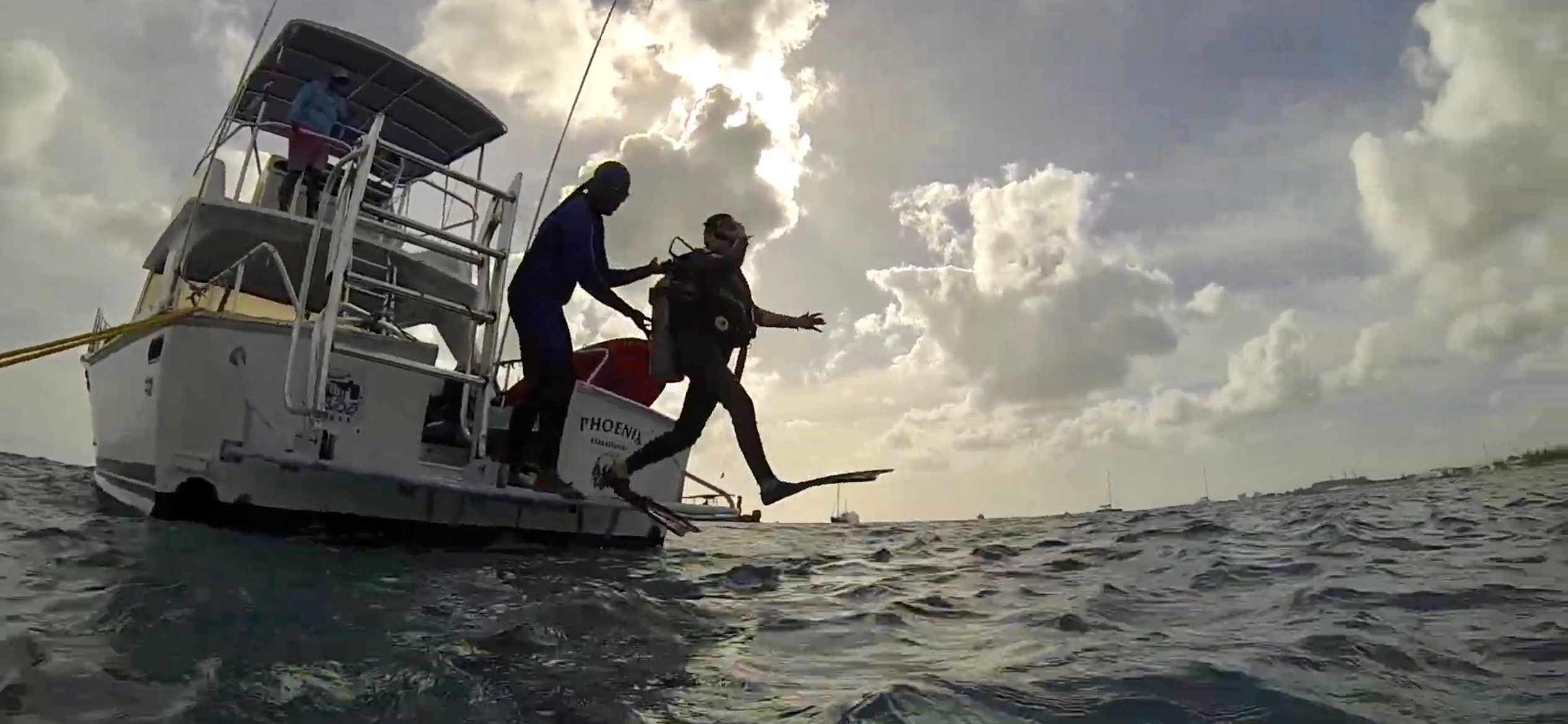 “Yep. Just step right in.” Michael repeated the instructions from the water below. I just needed them all to shut up so I could concentrate on falling into the water without knocking the tank on the back of the boat.