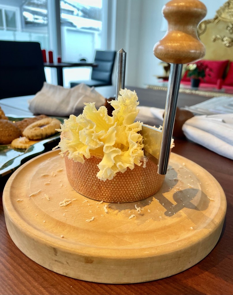 Tête de Moine cheese— shaved with a Girolle