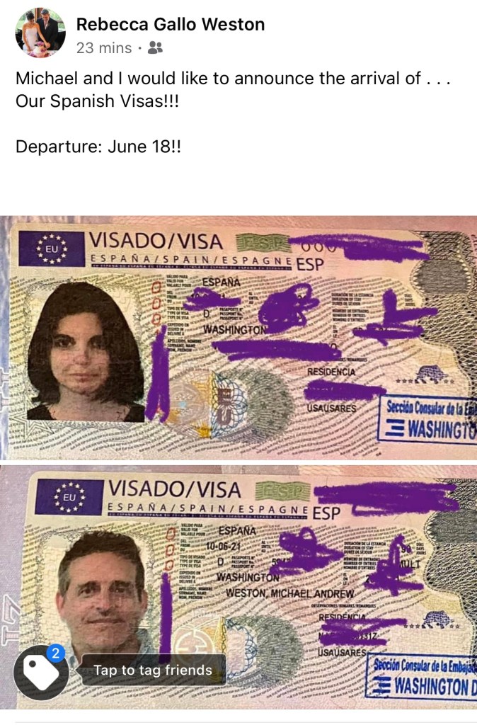 - The moment Michael texted the pictures of our Spanish visas that I just arrived in the mail.