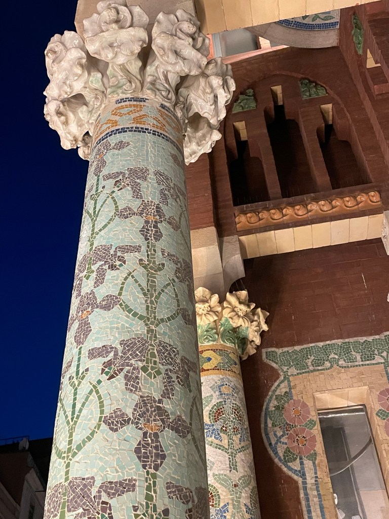 This time, my now-husband and I arrived without luggage for anyone to steal. We were on a day trip. And we had a mission. Michael was in search of speakers and one of Barcelona’s hopefully-more-esteemed residents had some for sale. As it turned out, the match wasn’t meant to be. But we made the best of it by taking the time to roam her streets where we happened upon her Palau de la Música. We decided to go in for a tour and, once again, Barcelona dazzled me with a building. And convinced me to meet her a third time.
